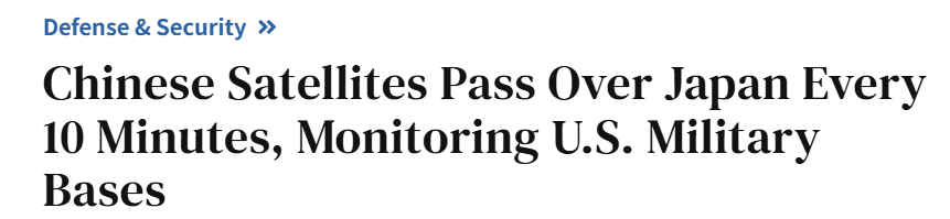 报道强调,对去年12月一周的观测显示,这些卫星平均每天飞越美国海军横须贺基地周边“约60次”。